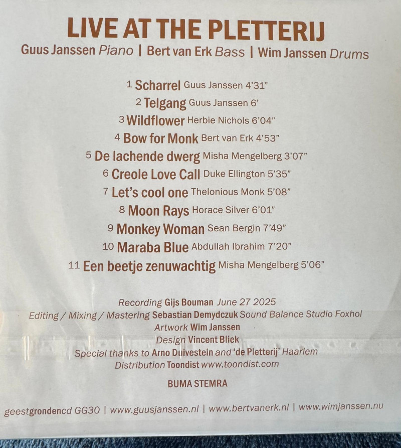 april 2026 CD : "LIVE AT THE PLETTERIJ"